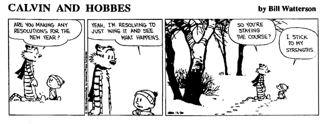 [4] New Years Resolutions, Calvin & Hobbes, The Ukiah California Daily Journal, December 31, 1995. accessed online at https://www.flickr.com/photos/51764518@N02/31862667386