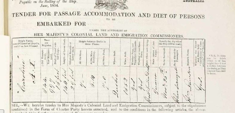 - State records of South Australia. South Australia Crown Lands and Immigration Office. Australia, South Australia, Crown lands and immigrant ship’s papers (deaths and births on board), 1849-1885. Immigrants ships papers (deaths and births on board), GRG35_48_2_10_1855-Caroline, 1 Jan-31 Dec 1855. Accessed at: https://www.familysearch.org
