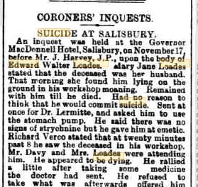 - CORONERS’ INQUESTS. (1888, November 19). Evening Journal (Adelaide, SA : 1869 – 1912), p. 2 (SECOND EDITION). Retrieved February 17, 2019, from http://nla.gov.au/nla.news-article204464900