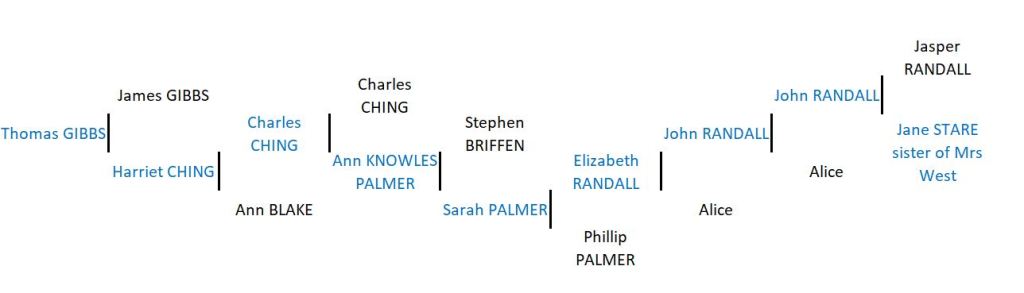 Below we can trace the line from Thomas GIBBS back through to Jane STARE the sister of Frances WEST.
