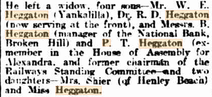 - MR. P. T. HEGGATON, M.P. (1914, June 25). The Advertiser (Adelaide, SA : 1889 – 1931), p. 15. Retrieved February 6, 2022, from http://nla.gov.au/nla.news-article6422479